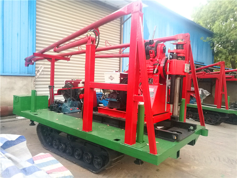 4、鉆機、水泵、塔架一體,搬家方便快捷,可自行上下汽車搬家時鉆桿鉆具等一切東西均可放在履帶底盤上一次運走。